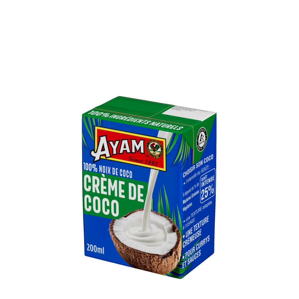 100% NOIX DE COCOCette crème de coco AYAM™ en tétrapak est composée à 100% de noix de coco, et rien d'autre! 90% d'extrait de coco et 10% d'eau de coco. Haute QualitéLa technologie Ultra-Haute Température (UHT) utilisée par AYAM™, assure un produit frais avec une longue durée de vie sans besoin de conservateurs. Naturellement Sans LactoseLes laits et crèmes de coco AYAM™ sont de parfaits substituts sans lactose pour les recettes avec du lait ou de la crème fraiche. Développement DurableDans une logique environnementale, AYAM™ estime que l'intégralité du produit doit être utilisé dans le processus de production afin de limiter nos déchets. Par exemple, notre usine de produits à base de noix de coco utilise les coques pour faire fonctionner ses brûleurs, ce qui permet de ne pas consommer d'énergie fossile. Les déchets restant sont tous recyclés. L'intégralité des noix de coco est ainsi utilisée. |
