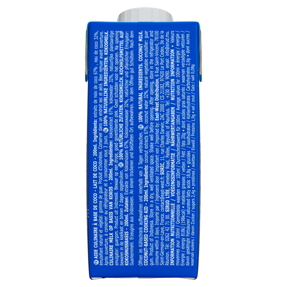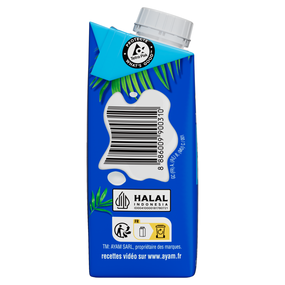 100% ingrédients naturelsHaute QualitéLa technologie Ultra-Haute Température (UHT) utilisée par AYAM™, assure un produit frais avec une longue durée de vie sans besoin de conservateurs. Naturellement Sans LactoseLes laits et crèmes de coco AYAM™ sont de parfaits substituts sans lactose pour les recettes avec du lait ou de la crème fraiche. Développement DurableDans une logique environnementale, AYAM™ estime que l'intégralité du produit doit être utilisé dans le processus de production afin de limiter nos déchets. Par exemple, notre usine de produits à base de noix de coco utilise les coques pour faire fonctionner ses brûleurs, ce qui permet de ne pas consommer d'énergie fossile. Les déchets restant sont tous recyclés. L'intégralité des noix de coco est ainsi utilisée. |
