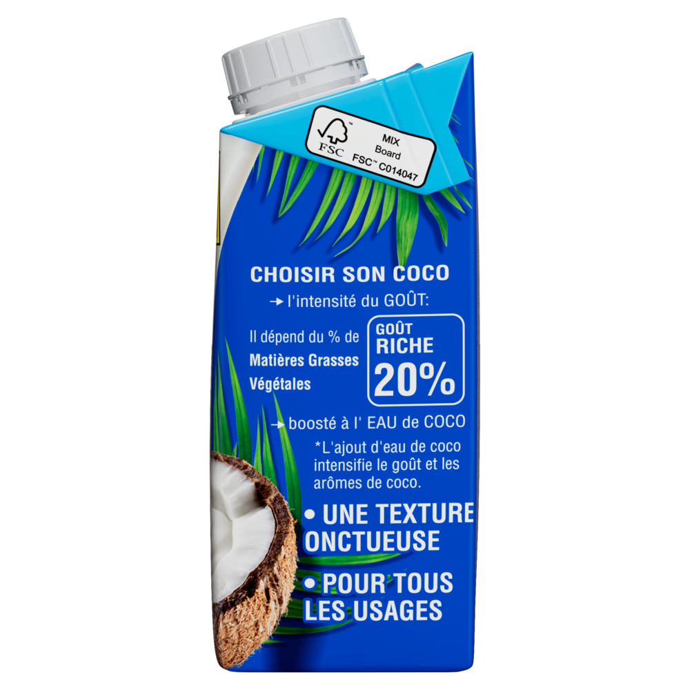 100% Ingrédients NaturelsExtraits de noix de coco (67%), eau de coco (32%), émulsifiant naturel et végétal (gomme de guar).