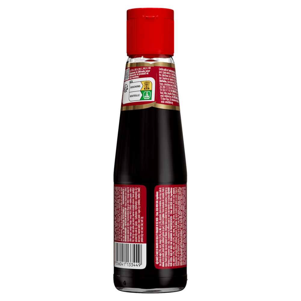 Eau, graines de soja (13%), sucre, vinaigre (10,4%), sel, blé, riz (1,2%), gingembre, écorce de mandarine, sucre roux, huile de sésame, ail en poudre, piment séché, stabilisant (gomme de guar).
