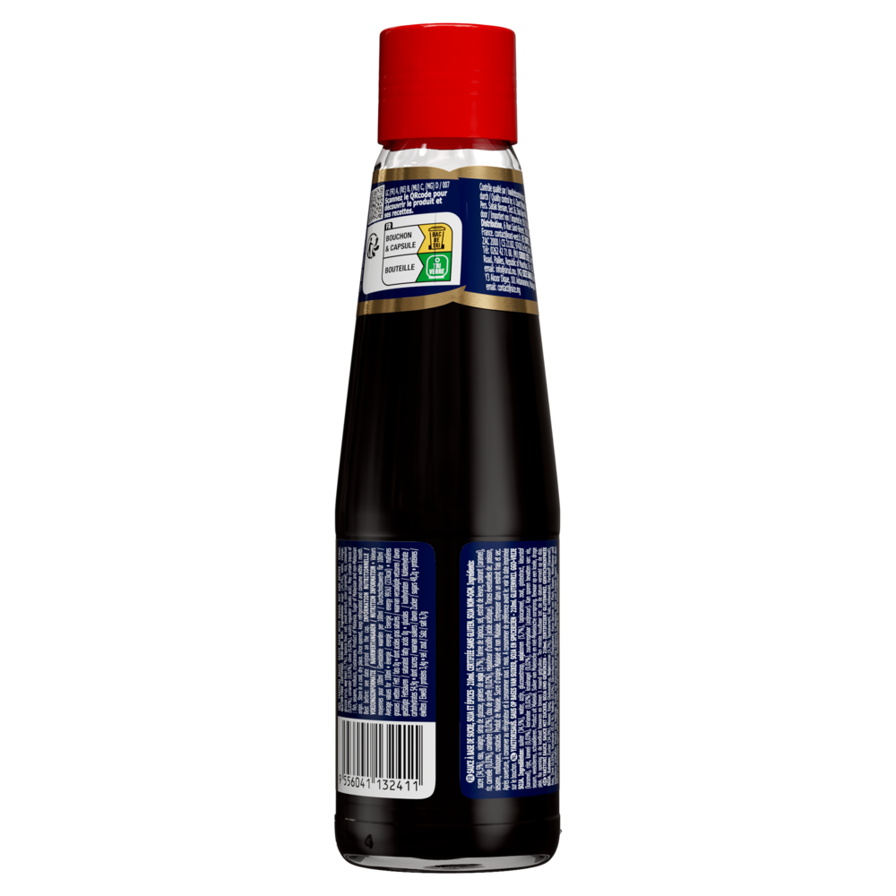 Sucre (34,5%), eau, vinaigre, sirop de glucose, graines de soja (5,7%), farine de tapioca, sel, extrait de levure, colorant (caramel), riz, cannelle (0,03%), coriandre (0,02%), clou de girofle (0,02%), régulateur d'acidité (acide acetique).