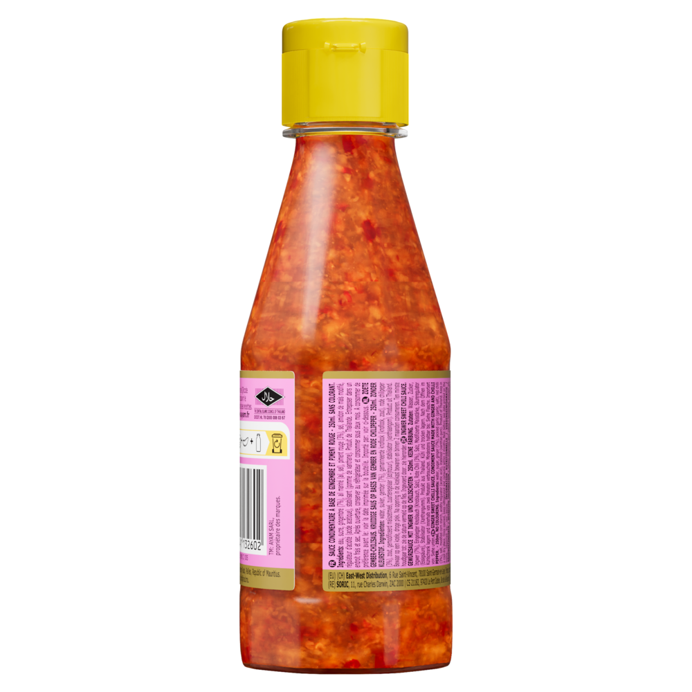 Eau, sucre, gingembre (7%), ail mariné (ail, sel), piment rouge (3%), sel, amidon de maïs modifié, régulateur d'acidité (acide acétique), stabilisant (gomme de xanthane).