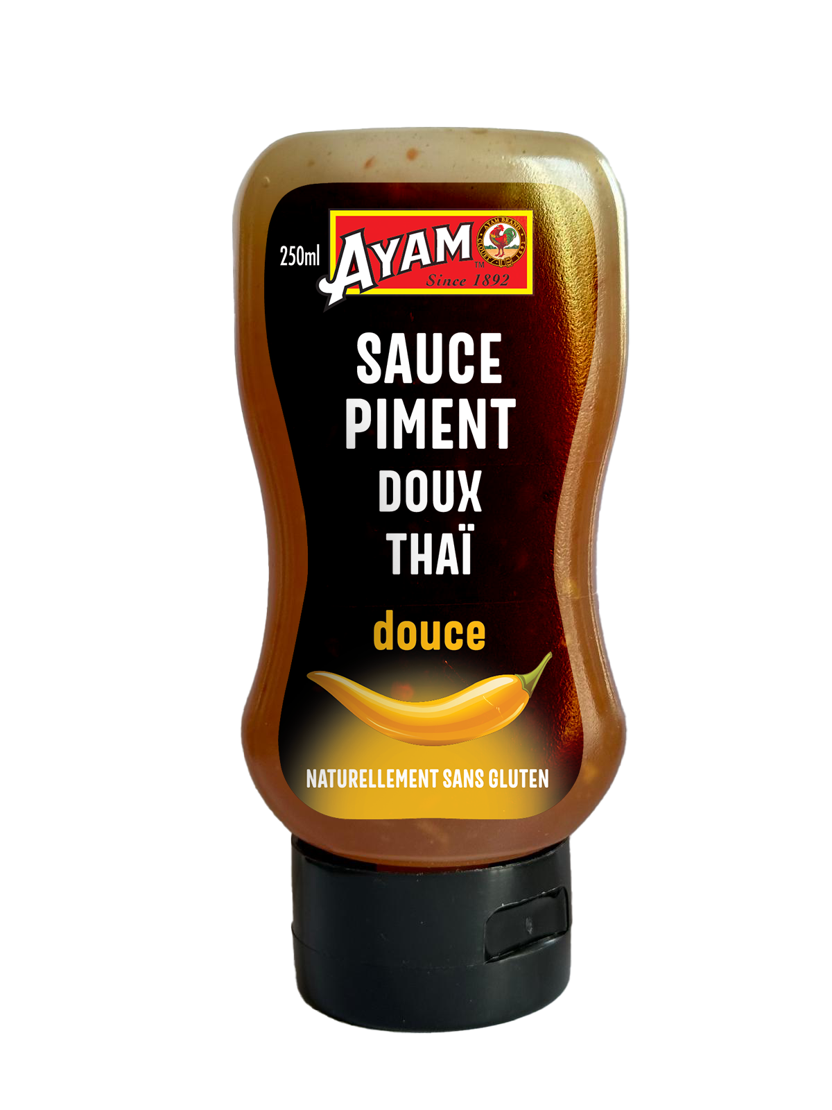 La sauce Piment Doux Thaï AYAM est une sauce piment douce et légèrement sucrée, faite à partir de piments rouges, et d'une pointe d'ail. Elle est idéale pour les personnes qui désirent ajouter un peu de piquant à leurs repas.