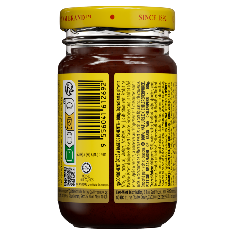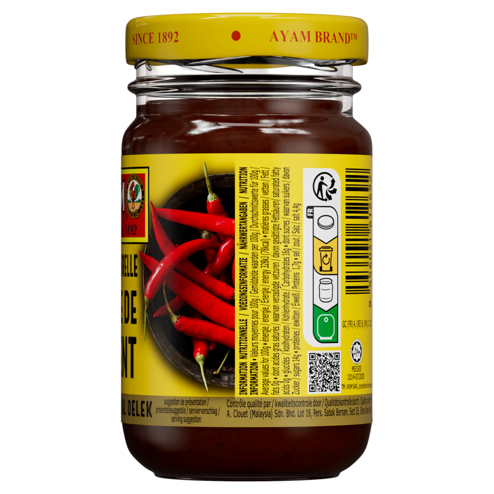 Naturellement Sans GlutenNotre Purée de Piment AYAM est naturellement sans gluten. Haute QualitéAYAM s'efforce de proposer des produits aux listes d'ingrédients courtes. Nous avons banni les aliments génétiquement modifiés, les conservateurs, le glutamate de sodium, les gras trans et les graisses hydrogénées de tous nos produits. Notre Purée de Piment AYAM est 100% ingrédients naturels. |