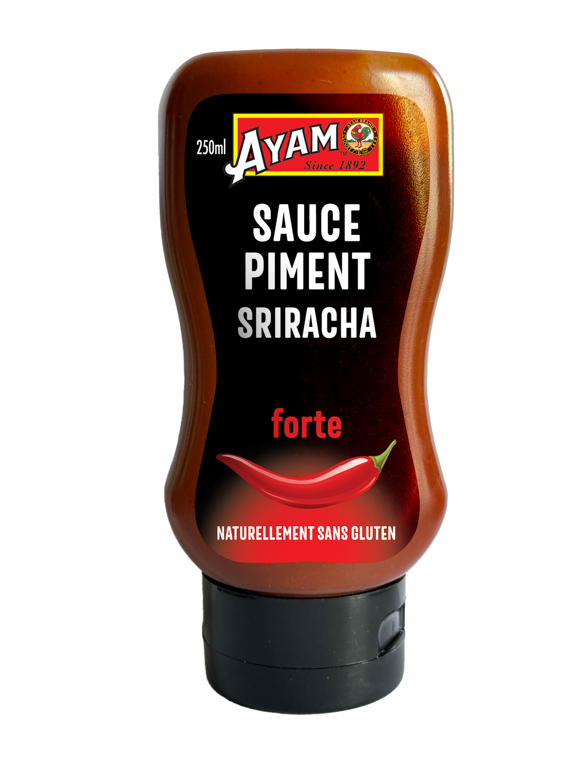 La sauce piment Sriracha AYAM est faite de piments rouges mûris au soleil, d'ail, de vinaigre, de sucre, d'eau et de sel. Elle est idéale pour les amateurs de piment.